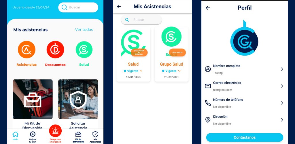 Diseñada con Ionic 7 y Angular 17, la app brinda a los asegurados acceso instantáneo a sus documentos y canales de ayuda, todo bajo una experiencia fluida en Android e iOS.